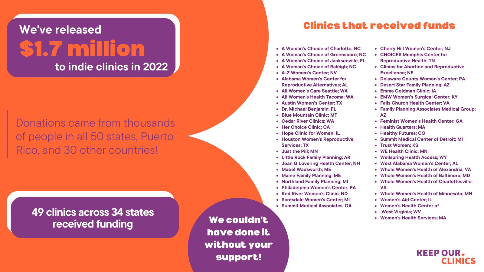 Keepourclinics On Twitter In 2022 We Ve Released 1 7 Mil Directly To Indie Clinics And We Re Not Stopping Funding Has Helped W Expenses Associated W Preserving Abortion Access Legal Assistance Education Amp Advocacy